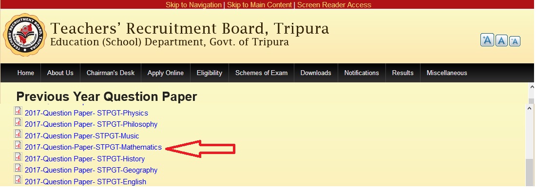 Question Paper of TRB Tripura Selection Test for Post Graduate Teachers Mathematics Question Paper 2017 is now available in the official website of Teachers’ Recruitment Board, Tripura.
