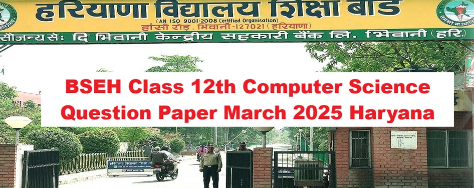 BSEH Class 12th Computer Science Question Paper March 2025 Haryana